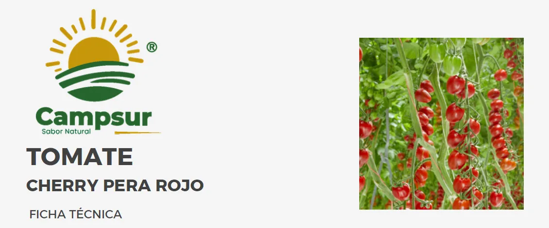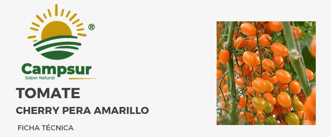 El Tomate Cherry Pera, es una variedad tipo mini-midi ciruela fresa que destaca por su dulzura, firmeza y presentación en racimo. Cada fruto permanece perfectamente adherido al ramo, ofreciendo una apariencia atractiva y uniforme. Su sabor equilibrado y su textura crujiente lo hacen ideal para el consumo en fresco, aperitivos saludables o ensaladas gourmet.