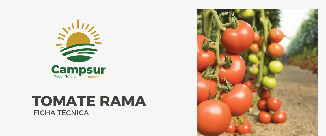 El Tomate Rama es redondo y consistente con un color rojo intenso. Frutos uniformes recolectados en su justo punto de maduración. Aspecto sano, ramo uniforme, fresco y limpio.Sabor dulce, piel lisa. Tamaño y color uniforme.