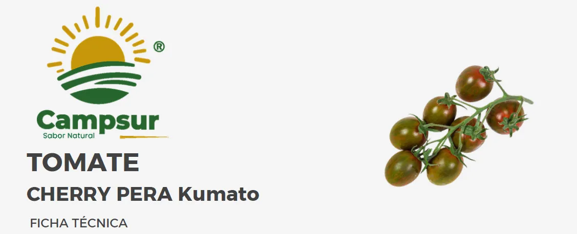 El Cherry Pera Kumato es una variedad de pequeño formato que destaca por su color oscuro característico, su sabor intenso y su equilibrio entre dulzor y matices ligeramente ácidos. Su forma alargada tipo pera, junto con una textura firme y jugosa, lo convierten en un tomate muy atractivo tanto por su presencia visual como por su calidad en boca. Es ideal para consumo en fresco, ensaladas, aperitivos y presentaciones gourmet.